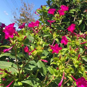 🏷今日のお花 オシロイバナ🌼 別名・夕方から咲くことから ユウゲショウ(夕化粧) フォーオクロック ずっと昔の幼き頃 花びらをこすって色を出し 爪💅を染めた懐かしい思い出┌(・。・)┘♪⁽⁽ଘ( ˊᵕˋ )ଓ⁾⁾
