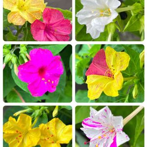 お早うございます いろいろ…✨🤍💖💛 別名:ユウゲショウ 英名:Four-o'clock(夕方咲くから) Marvel of Peru(ペルーの不思議) 一本の枝から異なった色の花を咲かせるから