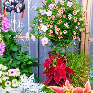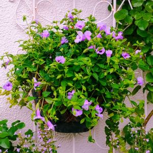 PWスーパートレニアカタリーナラムレーズンと八重咲きペチュニアのハンキング🌿その後 トレニアは常に良く咲いて伸びるので、こまめにカットして、この大きさを維持してます🪴