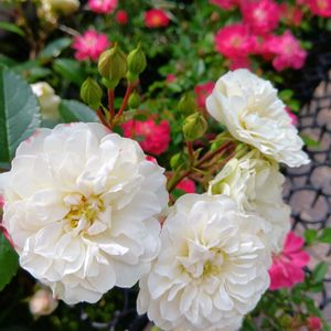 今日のお庭 レオナルド・ダ・ヴィンチ 満開です🌹😆✌️ ニーレンベルギアは冬越しさん🤍 もも色ハート アマゾナスは両株ともモリモリに❗️ オーニソガラム 可愛らしいコが咲きました😍