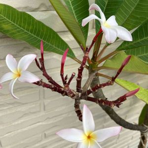 プルメリア シンガポールホワイト。 台風来るなら入れないと…(´-ω-`) ちなみにクルクル状態のは先程開いてましたがメレパみたいな黄色で咲いてました(*´ω`*)