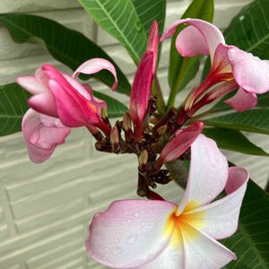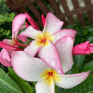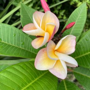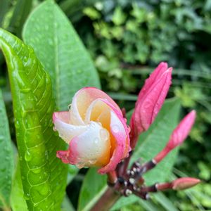 雨のプルメリア。 カラカウアスターさん。 天気が悪いと蕾がボロボロ落ちるので晴れ間が欲しい( ;∀;)