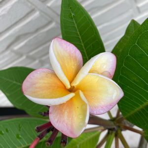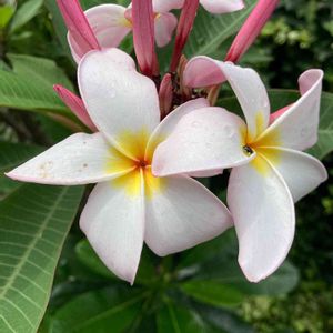 プルメリア。 カラカウアスターですが、ルリマルノミハムシにより花の傷みが早いです… 晴れが無いので色が薄い(´・ω・`)