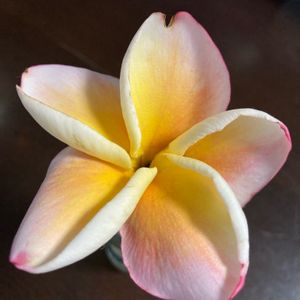 プルメリアのビューティフルタイランド。 落ちた花を一輪挿し。 4日目ですがまだまだいけそう(*´∀`*)