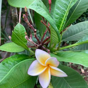 寒い雨に打たれて☔️うちに来て初めてのプルメリアが開花( ^ω^ ) 沖縄産セラダイン(多分ちゃんとしたセラディーンとは違う)という適当な品種(´∀`*) 小さな苗としては意外と花も大きくて優秀ですね(*´ω`*)