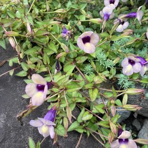 スーパートレニアカタリーナ アメジストとラムレーズン 花壇に挿し芽株を茎伏せにして植えたらトレニアじゅうたんできました😊 アメジスト強めのところとラムレーズン強めのところがあります この花壇にはこれからビオラを定植する予定 トレニアを冬越しさせるために ポット苗も作ってあるけど まだしばらく花壇のトレニアも楽しみたい そしてタネから育てたビオラのポット苗が待機中 この花壇の冬支度、 さていつにしようか 悩ましい