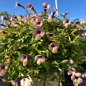 𓍯PW スーパートレニア ラムレーズン𓍯 昨年の冬越しした子が涼しくなって花数増えて来ましたꕤ*。゚ 今年はハンギングにしてずっと北側に吊るしていたので成長が遅かった?かも😕 水切れを何回もさせてシナシナになっても復活してくれる強い子です💪🏻✨ 陽射しが届かなくなった頃から東側のフェンスに移動しました𖦥𖢇𖧡𖠿𖥧𖥣