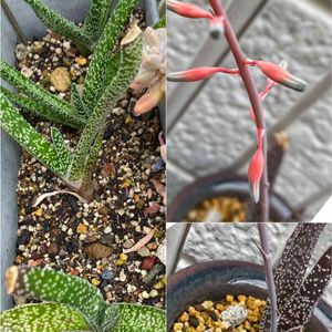 ガステリア墨鉾 どちらもベランダで簡単なビニールカバーだけで冬越ししましたが 鉢植えの方は色が変わっていたので 心配しましたが そちらの方に蕾ができました。
