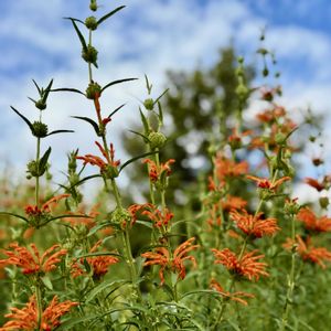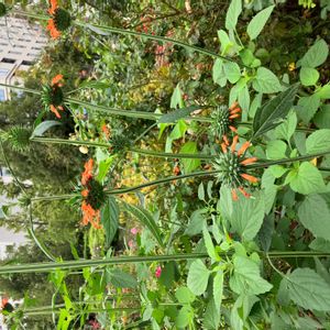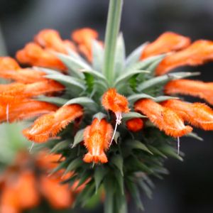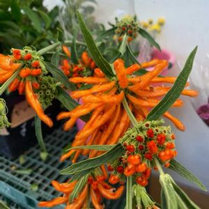 初めて見たレオノチス、別名ライオンズイヤー 耳と言うより鬣みたい🦁 オレンジ色のもふもふがビロードみたいです🧡🧡🧡
