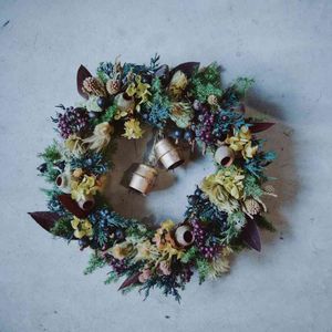 ベルベットリーフがポイントの冬リース🤗 アンティークベル🔔を2つも付けて いい音です♩