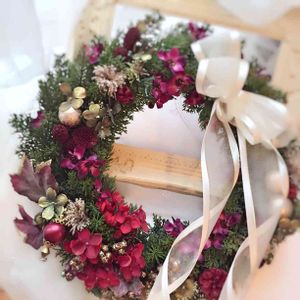 ドライフラワー リースの完成! 人生2度目のリース作り♪ GSの皆さんに刺激を受けて作ってみました クリスマスシーズンですが、あえてモリモリに飾らないリースにしてみました 引き算って難しい💦 でも…自己満足〜((´艸`*))♡