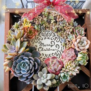 こんばんは✨✨ 🏷️錦の日 最近ta29gardenさんからお迎えしたマカベアナ錦の群生💕 何年か前に⭐️になったから今回はがんばって育てないと😊 リースはすうさんの手作り♪ 素敵なリースがクリスマス気分にさせてくれています🎄
