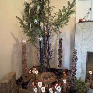 今年最後のお店でのレッスンは 枝で作ったツリーの土台にフレッシュグリーンを組み込んでのXmasツリー 完成後は中にライトを灯して完成です^ ^
