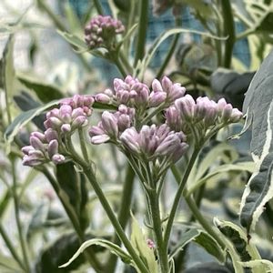 今日のお花𓐍𓏸𓈒フジバカマ𓈒𓏸𓐍 去年、斑入りフジバカマをお迎え🪴 暑さ寒さに強く、丈夫ですね〜(•̀ᴗ•́)و ̑̑ ただ夏に水涸れが度々あったので、スリット鉢を地に置いたら、半地植えのようになって、水涸れはなくなったけど、鉢がビクともしないくらい根が張ってしまったようです。 丈もグングン伸びちゃって、180cmくらいあります。途中で剪定した方が良かったのかな。 3枚目は2階のベランダから撮りました。 蝶々はあまり好きではないけど“アサギマダラ”って、アニメの鬼滅の刃で覚えました🤭🦋 会ってみたいなぁ•*¨*•.¸¸🦋 ❤︎ 4枚目は、宿根アスターミステリーレディ ニコル💜 一昨年お迎えして、今年も蕾が沢山♡⃛ かわいく美しく咲きだしました💜