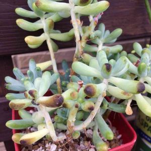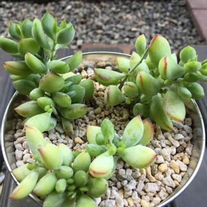 こんにちは¨̮ ) 今日は久しぶりの雨が降ったり止んだりの曇り空。 ずっと暑い晴天続きだったので雨に対して油断しておりました💧 昨夜、子供と20:30に寝てから雨音で飛び起き、すぐさま階段を駆け下りた私。 なぜなら蒸らした鳥かご多肉が屋根のないとこで静養中だったから😂 真夜中と思ったら22:30頃でした。 蒸れた2つの鳥かご、写真撮ろうと思ったんだけど寄せ植えのセンスが無さすぎて、おまけに葉っぱぽろぽろだから撮るのを躊躇いました⤵️ なので画像はカーポート修理の時、移動し忘れて直射日光に半日当てられた子です。 こっちもひどい😭 加工なしです。 とりあえず寄せ植え上手になりたい(´•ω•ˋ)