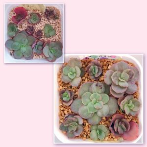 またまた久しぶりの投稿です。 まだ梅雨前なのに…日差しがいきなり強くなってきて、少しづつ焦げ始めてきました💦💦 という事で急遽、極狭ベランダの模様替えをしました✨ 夏仕様〜👍 これでザーザー雨降りも、梅雨明けの陽射しも慌てることは無い‼️ 建物寄りに棚を移動、棚を積み上げ他だけ(^m^ ) 焦げる心配はないけど、徒長の恐れあり‼️ 写真はオパリナさん。 むっちりしてたのに、気づいたら焦げてた💦 強烈だったのね〜😭