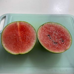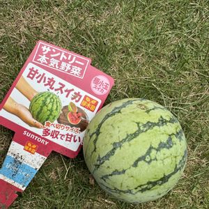 『レモン璃の香 』🍋 レモンは「隔年結果」という、よく実る年と実らない年を交互に繰り返す性質があります 我が家でも、たくさん採れる年と採れない年が交互に来ています 毎年コンスタントに収穫したいと思い、豊作の昨年度は摘果して実を20個以下に減らしたのですが、今年の実の数は「4個」💦 うまく結果を出せませんでした😅 大きな実を付ける品種なので、もっと減らす必要があったのかな❔️ ②そして夏に伸びる「徒長枝」が今年もたくさん・・・ 徒長枝には実が付きにくく、無駄に栄養を取られてしまいます 早春に剪定では太くて切るのが大変なので、伸び始めた時に剪定するのが一番簡単なのですが、今年は暑すぎてそれをすることができませんでした💧 過ごしやすくなったら短く剪定しようと思います ③実つながりで サントリー本気野菜 『甘小丸スイカ 』 次々収穫しています🍉 300g台〜800g台と大きさにバラツキがありますが、今まで収穫した実全て上手く赤くなっていました💖 手のひら大で小ぶりなので、食べきりでとっても食べやすく、ジューシーで美味しいです✨ 今まで小玉スイカは三回栽培して、収穫したけどまだ穫れ時じゃなかった事が多々あったのですが、甘小丸スイカは「受粉した日から、30~35日頃を目安に収穫」と、記載があったので、収穫適期がわかりやすいのが、良いですね😊 最近はウリハムシの食害がひどく、今出来ている実が食べれるまで成長できるか心配です💦