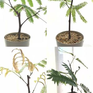 アルテシマ姉妹♡ 全員揃っては最後となる集合写真(*´꒳`*) 左から 長女 5月中旬剪定/6月中旬鉢上げ 次女 7月下旬剪定/9月上旬鉢上げ 三女 7月下旬剪定/9月上旬鉢上げ 四女 9月中旬剪定/10月中旬鉢上げ(小枝ちゃん12/6投稿) 五女 10月中旬剪定/12月中旬鉢上げ(12/15,1/25投稿) 長女は、1月上旬から、蘭鉄線を使って少しずつ曲げ木に挑戦していたが、かなりご機嫌ナナメで、全く動かなくなってしまった。 先の新芽部分も黒くなってしまって、仕方がなく蘭鉄線を外したのが4月中旬。そうしたら、黒くなっちゃっていた新芽部分から、短期間で2枚葉を展開! よかった!よかった〜‼︎ ( ・ㅂ・)و ̑̑ これで曲げ木また再開してみる⁈なんて言っていたら、脇芽を2つ発見!!!Σ(゚Д゚ノ)ノ (写真左下) 私の曲げ木計画に脇枝の予定なかったんですけどー(´・ω・`;) 三女は、先日里子に行くおうちが決まった矢先、強風で棚から落下。負傷して白い血を流した。その後、血を流した部分と負傷した幹部分は茶色く。何とも痛々しい(´•̥ω•̥`) 幹の裏側は凹んでいる(写真右下)どーするよ⁈ 摘芯して枝分かれさせてから送り出す⁈ 五女はもう里親の元へ! 達者でな〜♡ ( ´ ꒳ ` ) ノ