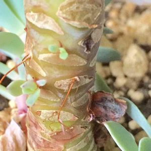 増えて欲しいと言っていた青い渚さん、今日下葉をめくったら脇芽出てる‼️‼️ やったー😍 ちょっと周りの葉を取って光が入るようにしてみました。 頑張れチビッコ💕