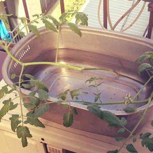 2016.6.27 トマトの脇芽かそうでないのかが、円状に誘引してるためわかりづらく、気がついたらこんなに大きく…!! おかげで実ったトマトがちっとも赤くならなかったので切りました。 が、なんかもったいないというか、かわいそうになってしまって、とりあえずの延命措置で水につけておいたら… お風呂に入ってリラックスしている感がすごいですwww