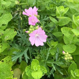 ハーブの中で可愛いピンクの花を咲かせていました︎💕︎💕 ピンクのお花と、まわりのハーブの 名前教えてください😊🙏 #たんばらラベンダーパーク にて
