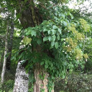 大木に巻き付くツルアジサイの猛成長ぶりに脱帽(^◇^;) #たんばらラベンダーパーク にて