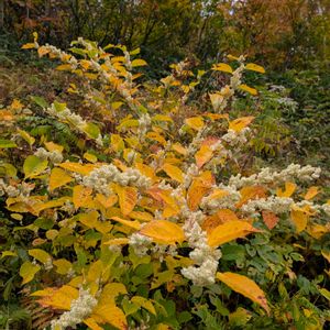 イタドリがとても綺麗な色になっていました♪ イタドリ(虎杖) タデ科 イタドリ属 多年草 北海道、本州、四国、九州に分布 山野に生育 高さ1〜1.m。 茎は円柱状で中空、直立、上部では斜傾。 葉は互生、卵状楕円形〜広卵形、約10cmで先が尖る。 葉腋からでる円錐花序に白色か淡緑色の小さな花を密につける。 痩果は宿存する花被に包まれ、黒褐色、光沢があり卵状楕円形。 花期6〜10月 10月13日撮影 檜枝岐村