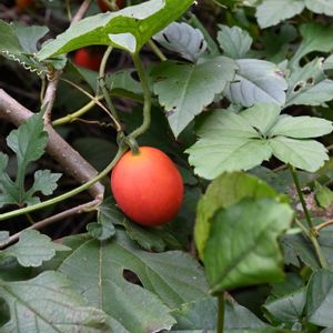 草むらの陰からカラスウリの赤い実が✨❤️🎶 蔦の絡まり具合と、朱色の果実が絵になります🖼️🎶 カラスウリ ウリ科 カラスウリ属 ツル性多年草 日が暮れると開花し、 花期は夏から初秋(7 - 9月) 雌雄異株。 葉のつけ根に花弁の先がレース状になった白い花が夕方(日没後)から開花し翌朝、日の出前には萎む1夜花です。 果期は10 - 11月ごろ。 雌花が咲く雌株にのみ果実をつける。 果実は直径5 - 7 cmの長楕円形で、形状は楕円形や丸いものなど様々。 熟する前は縦の線が通った緑色をしており光沢がある。 熟すと、オレンジ色ないし朱色になり、枯れたつるにぶらさがった姿が目立つ。 鮮やかな色の薄い果皮を破ると、内部には胎座由来の黄色の果肉にくるまれた、カマキリの頭部に似た特異な形状をした黒褐色の種子がある。 「今日のお花」 カラスウリ