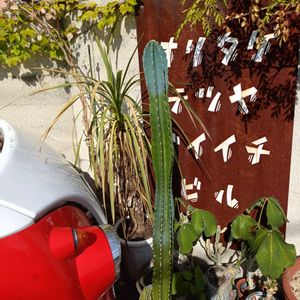 近所の花屋さんで見かけたサボテン(中央奥の背の高い柱状サボテン)です。 背丈が150cm程ありました。 誰が買うのか ? 未だに売れてません。