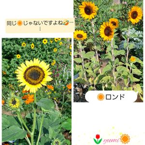 my ひまわり ロンド ①花壇(地植え)&鉢植え 同じ品種じゃないですよね🤣可愛いから🙆ですが 私の🏷️LOVE♡ひまわり 遊びにきてね😆 🏷️種から育てる♡🏷️かわいい発芽♡ 🏷️コラージュして遊ぼ♡🏷️コラージュ仲間達 参加します