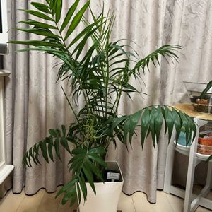 100均で購入したテーブルヤシ7〜8㎝ほどの可愛い子でしたが… 小さな鉢では根がはれなくて可哀想だったので大きな植木鉢に植え替えたらどんどん大きくなって3〜4年で100㎝になりました😱 植え替えて2年目からは花も咲きはじめましたー💁🏻♀️