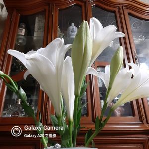 良い香り~💗💞~~ 庭の百合を花瓶に生けてくれました 爽やかな本当に爽やかな何とも言えない香り~ 身も心もリラックス~ 幸せをいっぱい いっぱ~いいただいています🤍