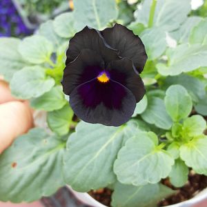 人生で初めて黒いビオラを見ました、買いました。いやーなんかすごいものを見てしまった!と家族で私1人が大騒ぎ。え、黒いビオラってそんなによくある???(^^;