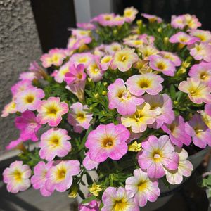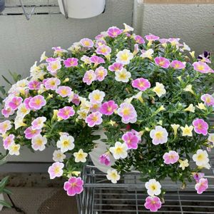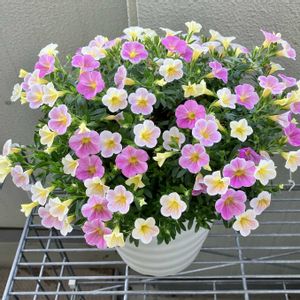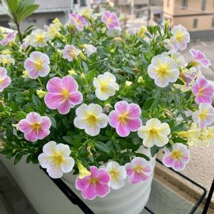 おはようございます♡•ᴗ•ꕤ*.゚ カリブラコア ファンシーピンクさんꔛꕤ 色の変化が楽しめて 小さなお花がとっても可愛い 🤍💛🩷🤍💛🩷🤍💛🩷 雨にも強いらしい💪 そろそろ切り戻し 前にパシャリ˘͈ᵕ˘͈♡ *7号鉢に植えました🪴 今日も厳しい暑さになりそう🥵 熱中症対策をしっかりとして 気をつけて 過ごしましょうね୧⃛(๑⃙⃘◡̈๑⃙⃘)୨⃛
