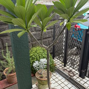 プルメリア。 ついに花芽が出てきました、しかも2つ😭 3,4年ほど前に初めて出てきたんですがその時はハダニにやられて花を見れず、、、 発芽から8年になりますが未だに花を見れていません^^; しかも品種ごちゃ混ぜの種からなので何色なのかもわかりません笑 こんな時期に花芽が出てきて無事開花してくれるのでしょうか🧐 こちらも19日に室内に取り込んでいます。