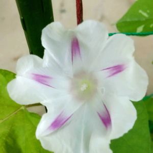 おはようございます😊 今日のお花 朝顔 ミルキーウェイ やっと我が家で咲き始めた朝顔 白地に紫の模様が綺麗です🥰
