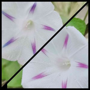 西洋朝顔ミルキーウェイ 昨日も投稿しましたが… 残りの2つの蕾も… 咲きました〜〜🤍💜 間違って切っちゃった蕾たちだけど 水に挿しておいてよかった❀︎.(*´▽︎`*)❀︎.