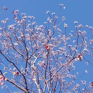青空に真っ白な花が咲いたようなナンキンバセの実。 トウダイグサ科 ナンキンハゼ属 花期 6〜7月 黄色花 新緑の若葉 夏の青葉 秋の紅葉 一年中楽しめる🌳です。