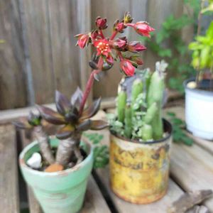 実家の多肉コーナーからツミツミ寄せ植え✨あと一鉢製作中のものと一緒に持ち帰ります😁