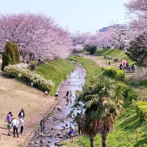 🌸ソメイヨシノの桜並木🌸 3月27日県立相模三川公園 川沿いに続く桜の並木の風景🌸🌸🌸 桜の木の下でお弁当たべたり、 川で水遊びする子供達がいました 🏷今日のお花🌸サクラ