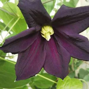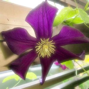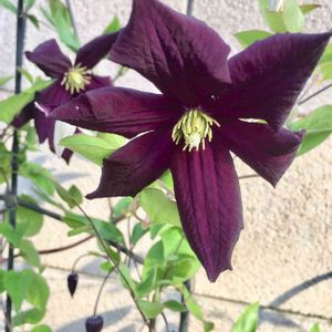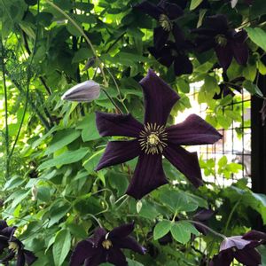 少し前の姿ですが、クレマチス ロマンチカです😊金色のシベと黒に近い色合いの花びらのコントラストが素敵です✨