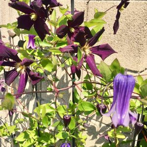 おはようございます☀ 昨夜は土砂降りの雨でしたが、今朝は青空が広がっています 台風🌀は北上するとの予報 こちらは時折不穏な風が吹いています 写真はクレマチス ロマンチカさん💜 1番花が終わり、6月13日に半分位に切り戻しましたが、ふたたび蔓を伸ばして咲き始めています♡ 切り戻しから開花まで約6週間でした!