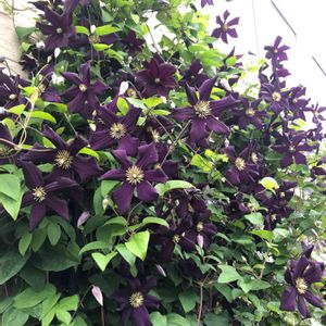 クレマチスロマンチカとロウグチ😊🎶 地植えにして5年になるので 枝数も多く勢いがあります👍 バラ🌹の1番花もだいたい終わって 今はクレマチスが次々に咲き始めてきました😊❣️ もうすぐ梅雨入り☔️ 紫陽花も控えています😁✨
