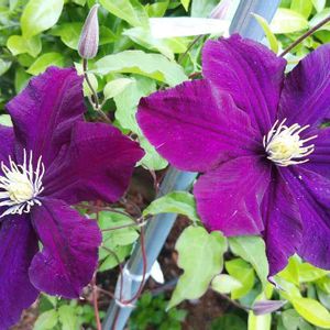 クレマチス ロマンティカの2番花 少し小ぶりだけど、この暑いのによく咲いてます( ˶ˆ꒳ˆ˵ )