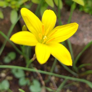 早朝散歩。 「キバナタマスダレ」かな。 パチリ Googleレンズで調べたところ「キバナサフランモドキ」を提案。 ネットで調べたところ、 「キバナタマスダレ」は「タマスダレ」より茎が太く、 「タマスダレ」の茎ににているのは「キバナサフランモドキ」sのことでした。