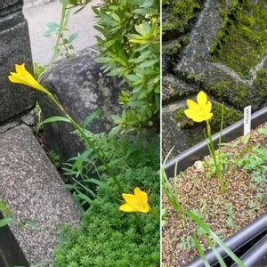 ゼフィランサス シトリナ Zephyranthes citrina 先日、路地植えのアマリリスの栽培スペースの除草作業中に開花しているのを見つけました。 アマリリスのシーズンは終わってしまったのでゼフィランサスが開花しているのを見つけて嬉しい気持ちになりました!