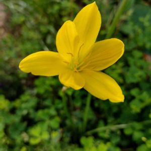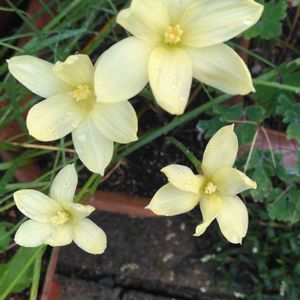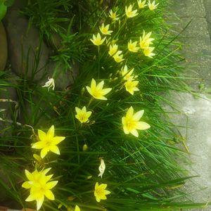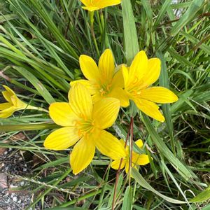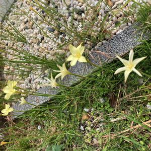 今朝のお散歩🚶♀️ 小さな公園の脇に 咲いていたゼフィランサスシトリナ🌼