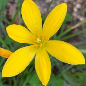 2023.10.16(月) ゼフィランサス シトリナ 🌼 去年も一輪だけ 今年もいっしょ 忘れてた すぐ閉じるので 今朝 咲いてるのを見つけたのは ラッキー✌️だった 💓 もともと2年前に8球 植えたのだけど いつのまにか 〜