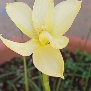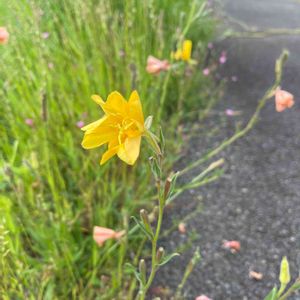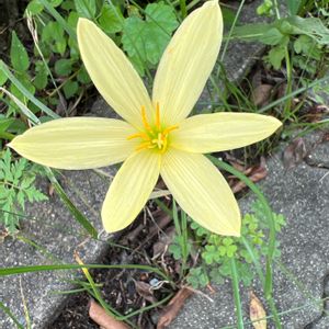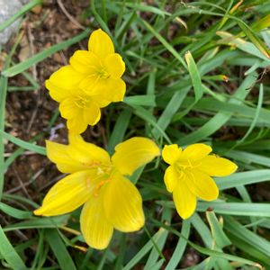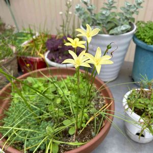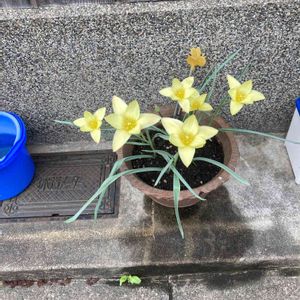 毎年咲いています🎵 球根で葉が細長いです花は実物大位です❗️種こぼれでも凄い繁殖力です😀 種を友人に頂き、もう10年以上たちますが、名前を忘れてしまいました😅 わかる方がいたら教えて下さい❗️ 宜しくお願いします🙇⤵️