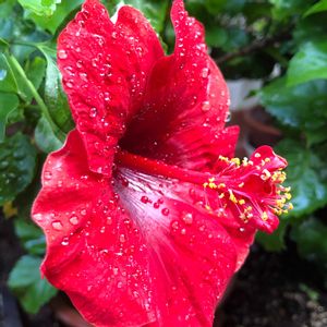 ☔️雨の中負けずに咲いています。 (*˘︶˘*).。.:*♡✨️✨️ ハイビスカス。キング。✨️✨️✨️ 🏷️ビューティフルレッド に飛び入り参加させて頂きます。♬ ⋆꙳𓄸 ♪ ( ง*ˊᗜˋ*)ว ♪ 𓄸꙳⋆ ︎ ♬